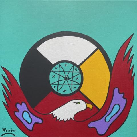 Eagle with wings around the medicine wheel